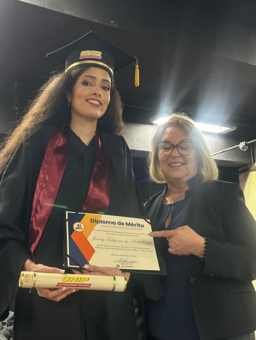 Além de receber seu tão sonhado diploma, a formanda Jenny Fabyara de Melo Costa foi homenageada com o Diploma de Mérito do CRCSP. A formatura da turma de Ciências Contábeis da Universidade Paulista (Unip) aconteceu no dia 26 de janeiro de 2026, na unidade Tatuapé da instituição de ensino superior.