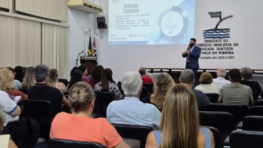 No dia 26 de fevereiro, os profissionais da Baixada Santista puderam aprofundar seus conhecimentos sobre a Reforma Tributária e seus reflexos no setor de comércio de bens e serviços, com a atividade “Imersão - Reforma Tributária e as Alterações em Notas Fiscais”. O tema foi apresentado pelo especialista em Direito Tributário Thiago Glucksmann, na sede do Sindicato do Comércio Varejista da Baixada Santista e Vale do Ribeira, na cidade de Santos, com moderação do representante do CRCSP Luciano da Silva Oliveira.
