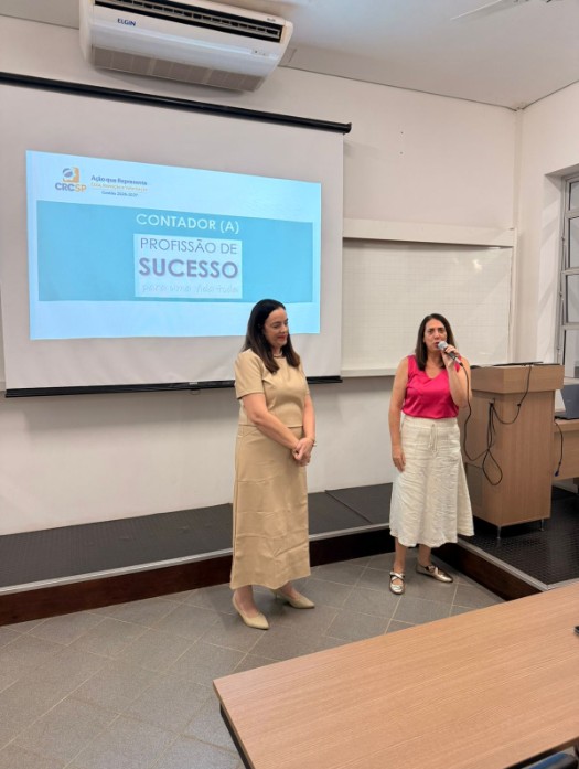 Em 31 de março de 2026, os alunos de Ciências Contábeis do Centro Universitário Unifafibe, de Bebedouro, tiveram a oportunidade de conhecer mais sobre o mercado de trabalho e os requisitos para obter sucesso na atividade contábil, com a palestra “Orientações aos Futuros Contadores sobre a Carreira e a Profissão”. O tema foi apresentado na instituição de ensino pelos conselheiros Ana Lúcia Corsino Picão e José Augusto Picão e pela representante do CRCSP em Bebedouro, Patrícia Izabela Aparecida Somer Gomes.