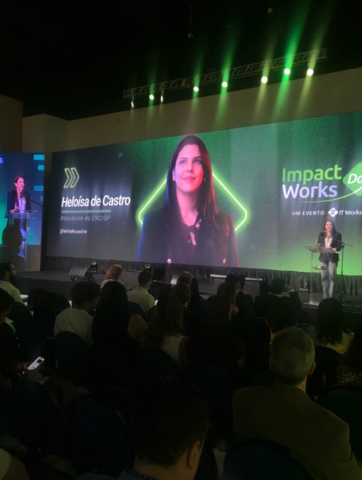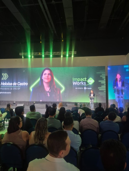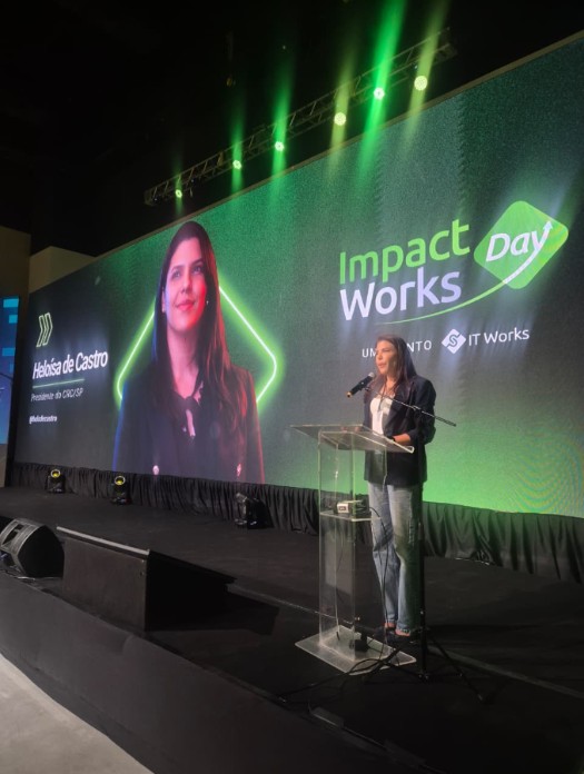 Nesta quarta-feira, 8 de abril, a presidente do CRCSP, Heloísa de Castro, participou do Impact Works Day, evento promovido pela IT Works que reuniu profissionais e especialistas para discutir tendências em tecnologia, inovação, gestão e os impactos da Reforma Tributária no ambiente de negócios.