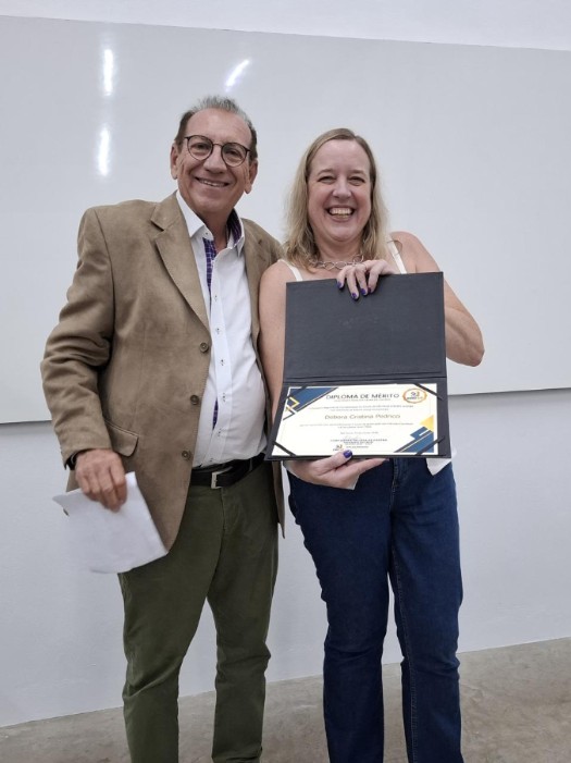 Impossibilitada de participar da homenagem por estar na última semana de gravidez, Débora foi representada por Fabiana Mangili, que recebeu o Diploma de Mérito em nome da amiga. O representante do CRCSP em Barra Bonita, José Roberto Beline, realizou a entrega do diploma. A coordenadora do curso de Ciências Contábeis da Faculdade Gran Tietê, Janaína Aparecida Alves Scaliza, também participou da homenagem.