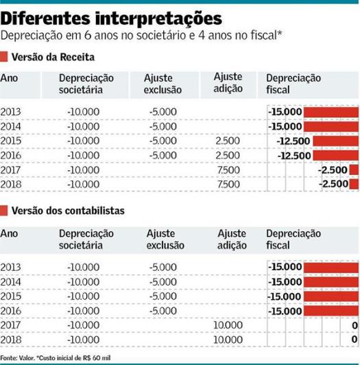 Na visão dos contabilistas, os ajustes dessas diferenças, que são adicionados à base tributária, só devem ocorrer após o aproveitamento integral da depreciação fiscal, que normalmente ocorre mais rapidamente do que a depreciação real do bem.