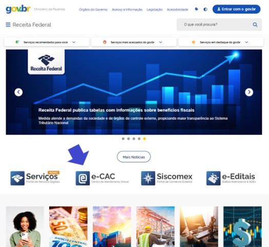 1 – Entrar no portal e-CAC, utilizando conta gov.br selo prata ou ouro, ou certificado digital: