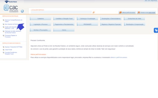 No site da Receita Federal na internet: