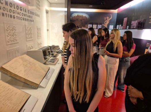 A coordenadora do curso de Ciências Contábeis, Maria Cristina Santos, e o professor Flávio Mangili Ferreira acompanharam os estudantes durante a visita, que contou com visitas monitoradas ao Espaço Cultural Professor José Joaquim Boarin, ao Memorial de Presidentes do CRCSP e ao Centro de Memória da Contabilidade Paulista Professor Joaquim Monteiro de Carvalho.